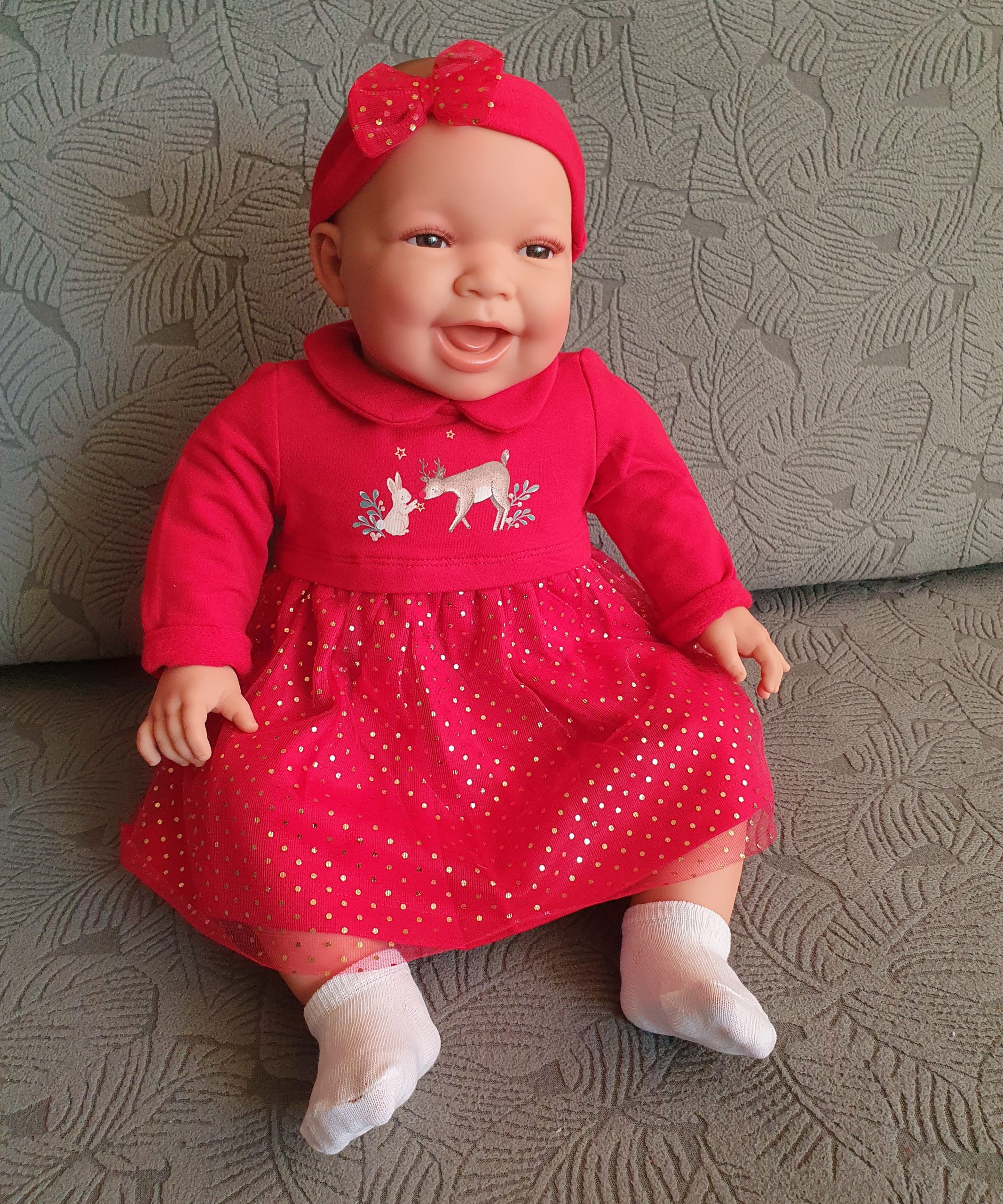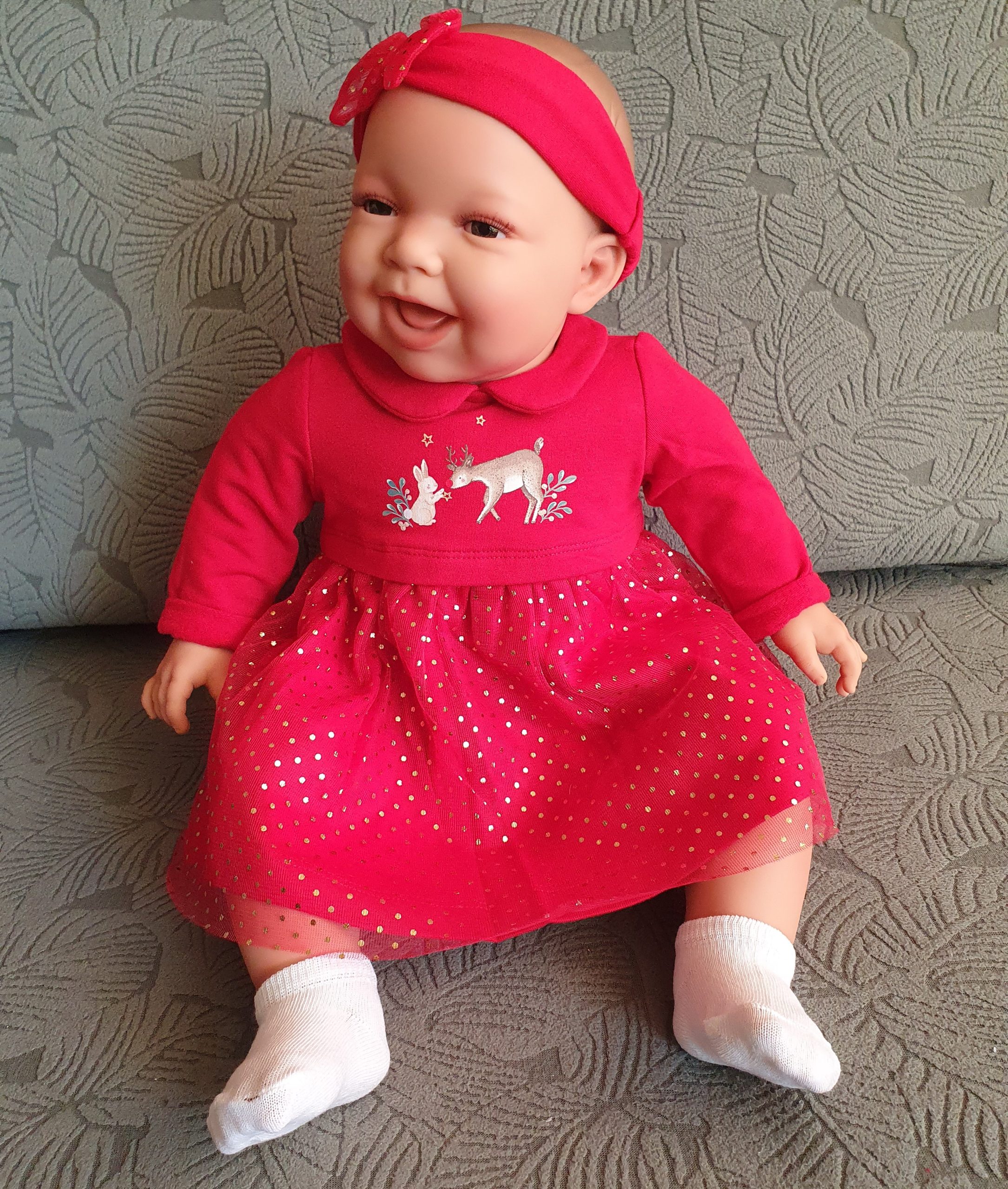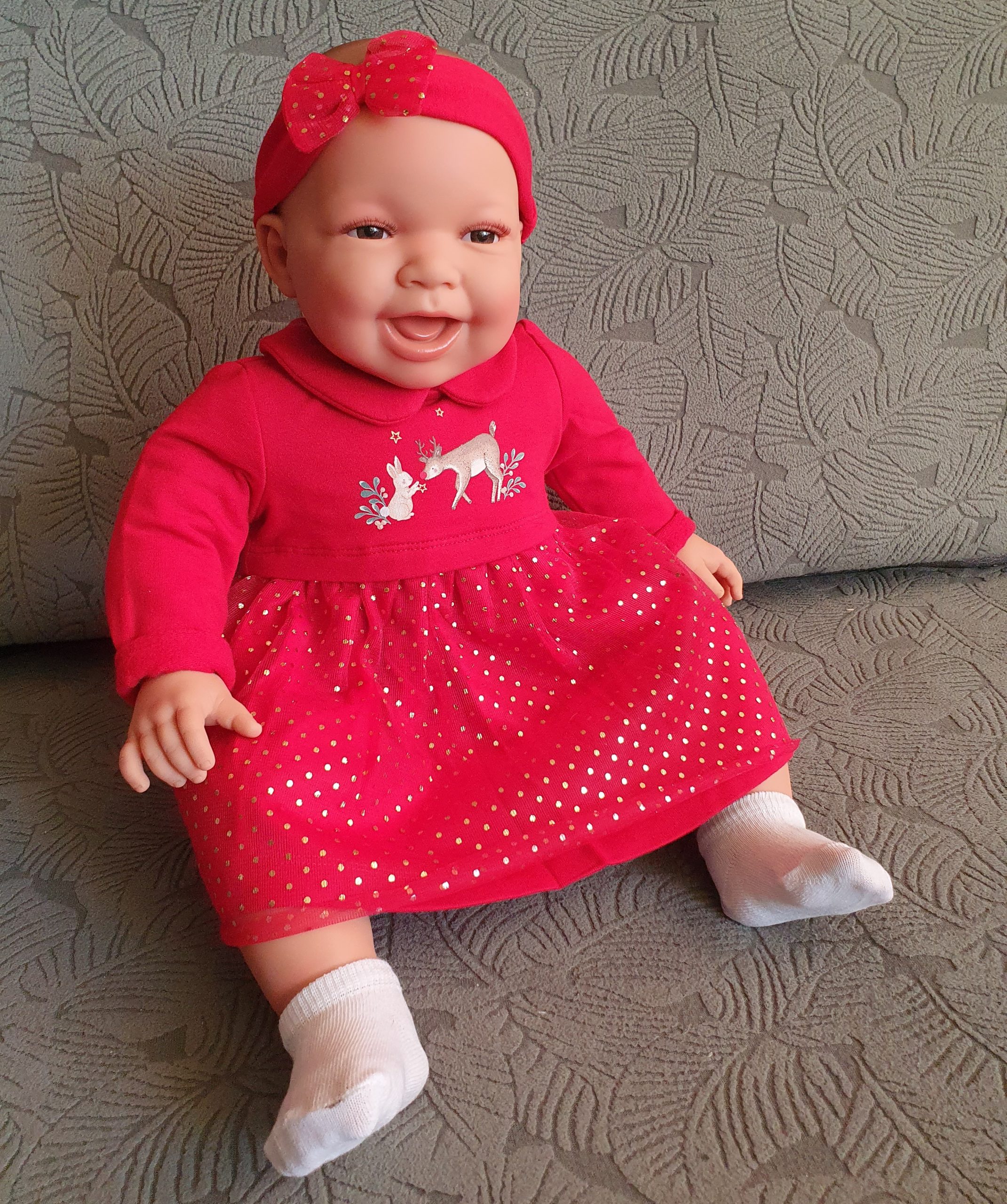 Grote maat Levensechte babypop Naomi met lachend gezichtje van het exclusieve merk Doro Dolls by Berenguer maat ca 53 cm.