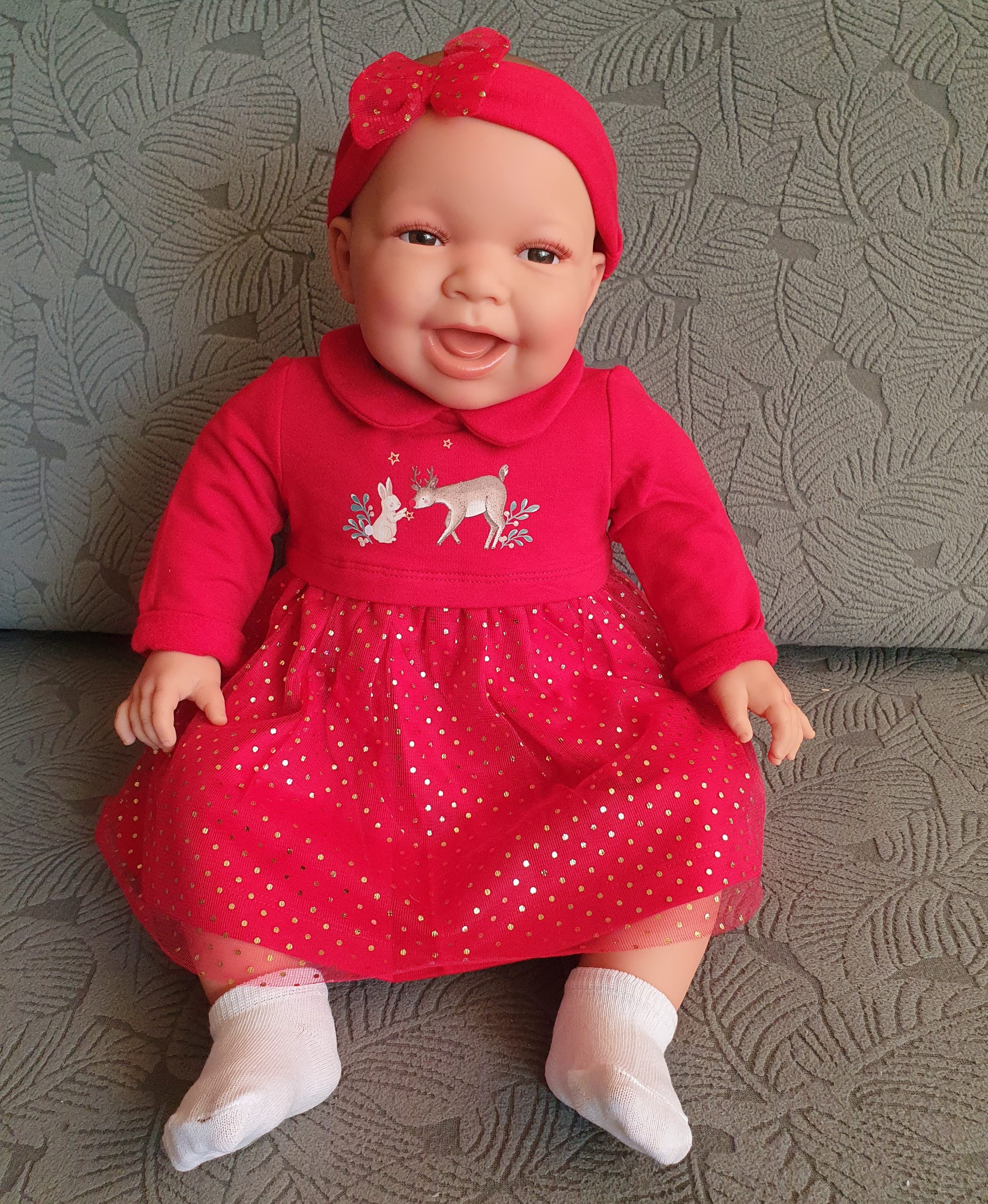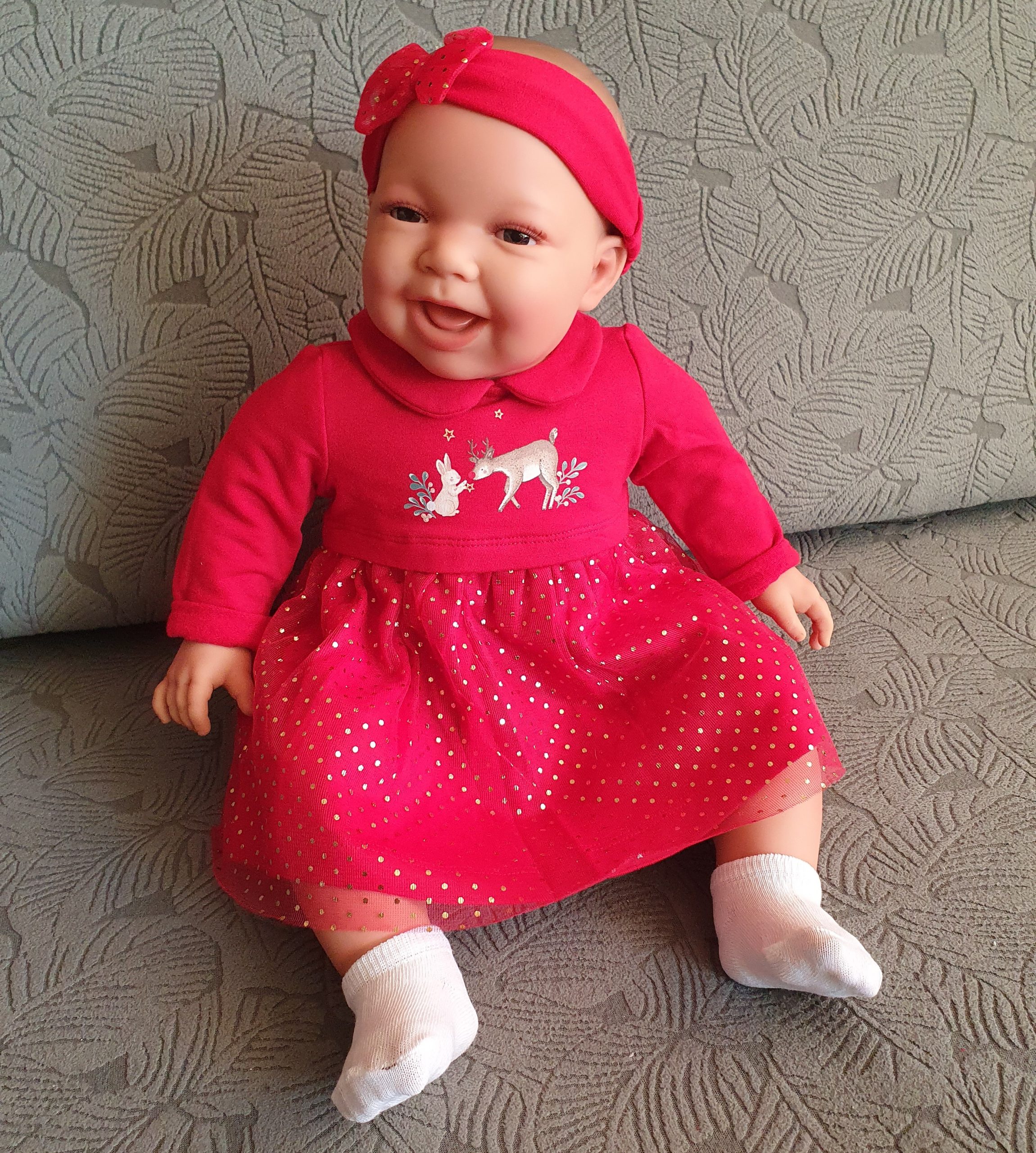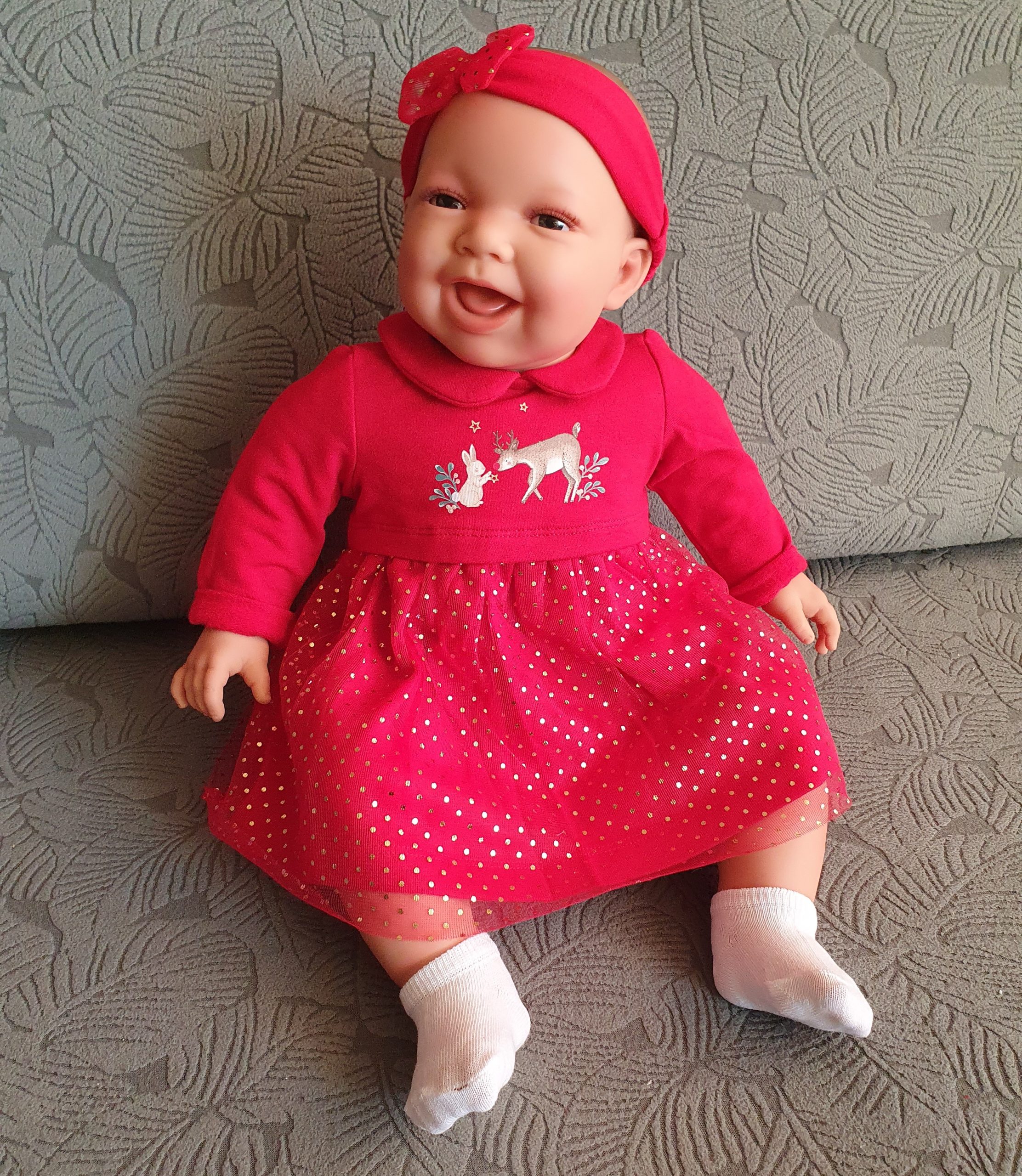 Grote maat Levensechte babypop Naomi met lachend gezichtje van het exclusieve merk Doro Dolls by Berenguer maat ca 53 cm.