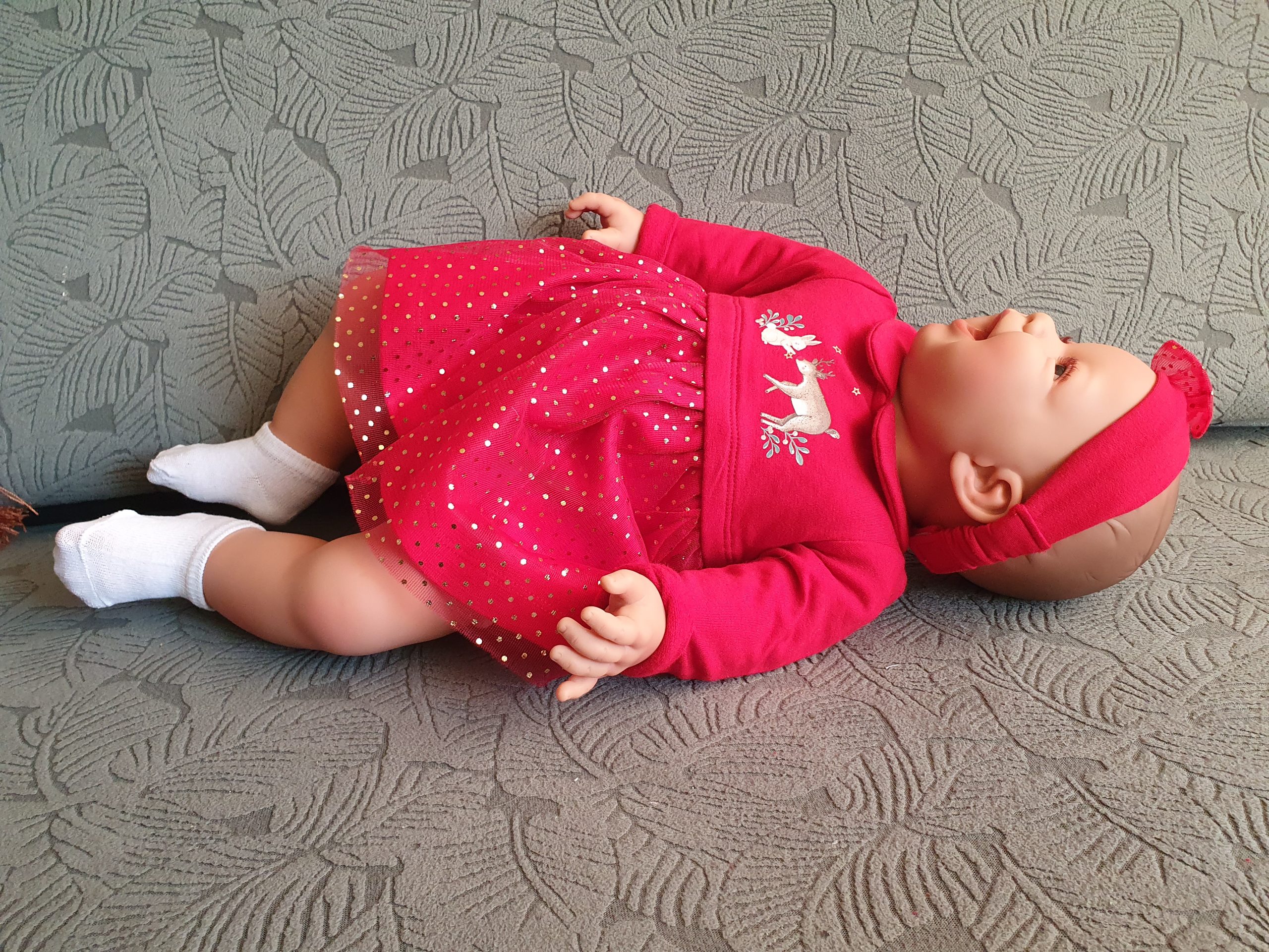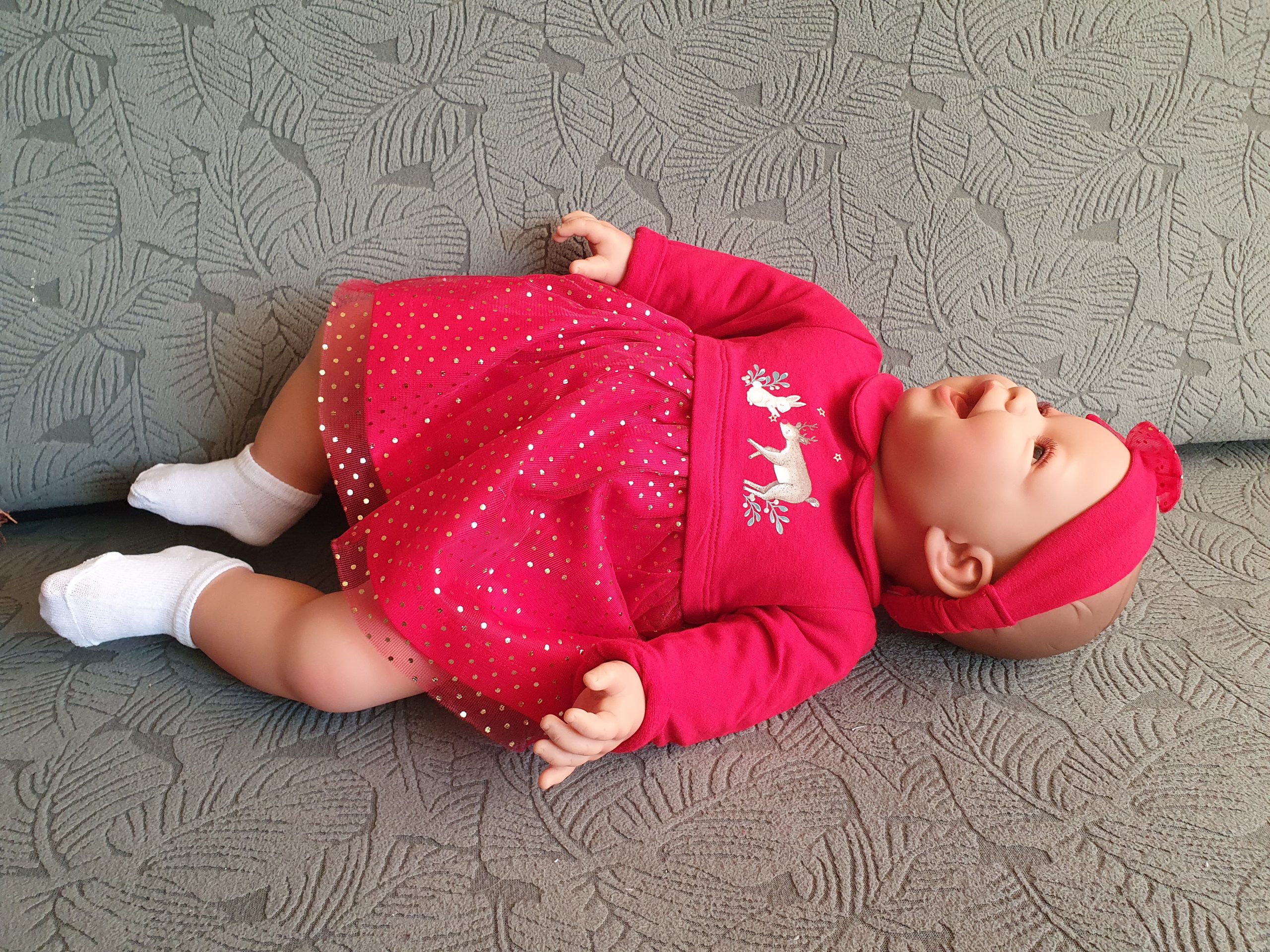 Maat 53 cm. De babypop past gewone babykleding klein maatje 50/56. Naomi wordt geleverd met luier en kleding. Deze pop is ook zeer geschikt voor ouderen met dementie en als show pop voor babykleding of bijvoorbeeld als oefenpop voor cursus babymassage. Is niet geschikt voor kleine kinderen onder de 3 jaar vanwege de tere wimpertjes. Deze poppen worden door de fabrikant aan ons geleverd in plastic, wij doen daar zelf een recycle doos omheen voor de verzending naar onze klanten. Gratis verzending binnen Nederland. Klanten uit België betalen een toeslag vanwege de hogere verzendkosten naar België.