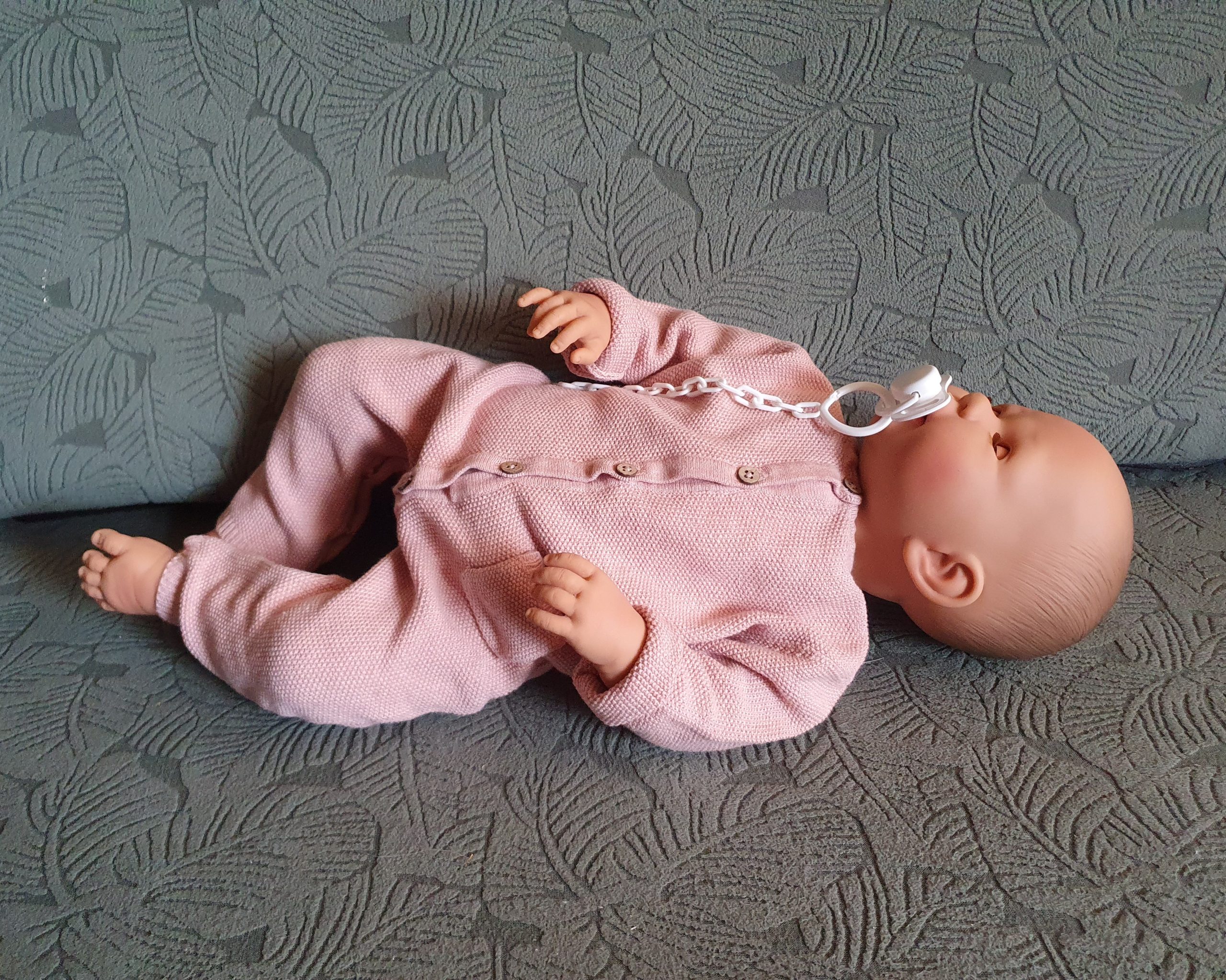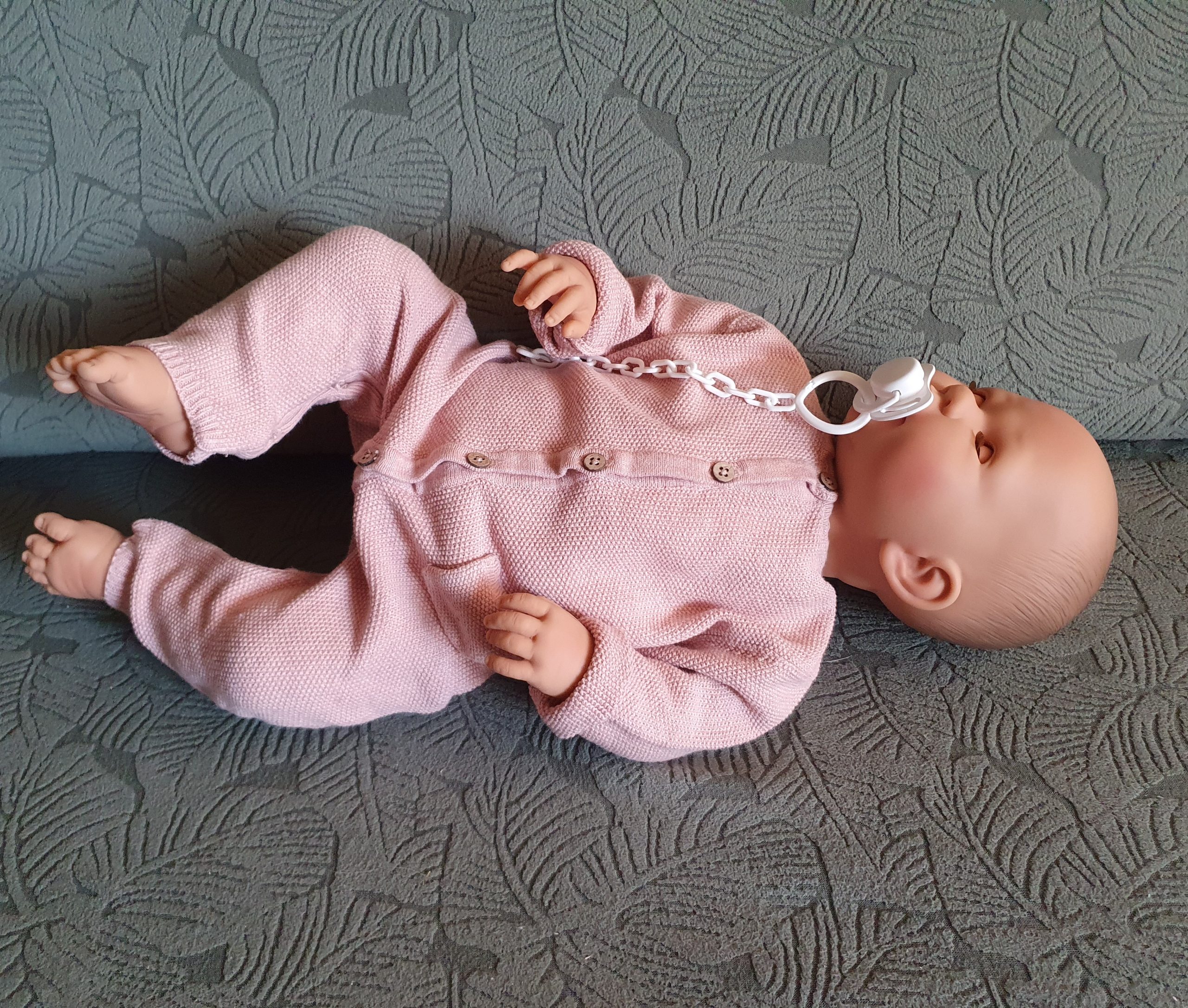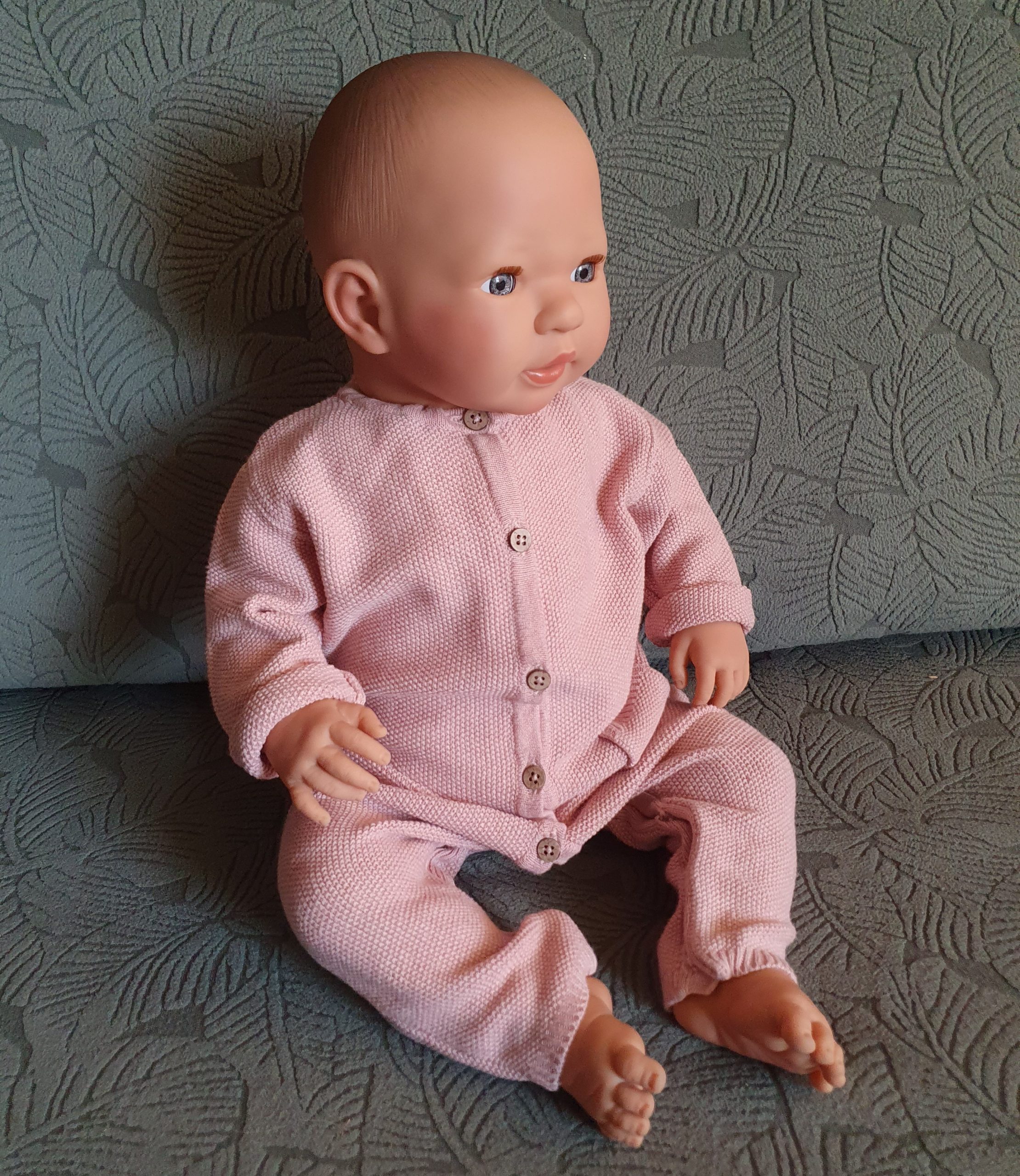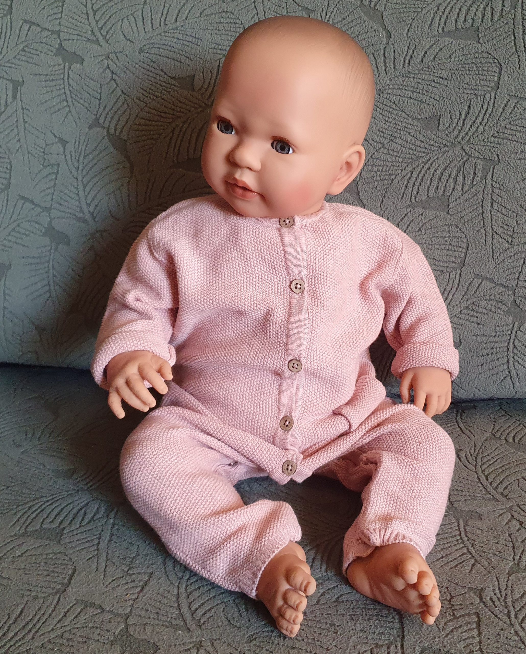 Het lijfje is van stof, de armen benen en hoofdje zijn gemaakt van vinyl. De armen en benen zijn draaibaar, de pop kan dus ook goed zelfstandig zitten. De pop heeft een mooi getailleerd gezichtje en blauwe ogen die open en dichtgaan. Maat 52 cm. Deze pop past kleine babykleding. Let op maatje 50 babykleding past het best. Inclusief mooi pakje en speen met speenketting. Lisa is geschikt als speelpop en als show pop voor babykleding. Deze pop is ook zeer geschikt voor ouderen met dementie en als oefenpop voor school. Deze pop is niet geschikt voor kinderen onder de 3 jaar. Verpakking : Deze poppen worden door de fabrikant aan ons geleverd in plastic, wij doen daar zelf een recycle doos omheen voor de verzending naar onze klanten. Gratis verzending binnen Nederland. Klanten uit België betalen een toeslag vanwege de hogere verzendkosten naar België.