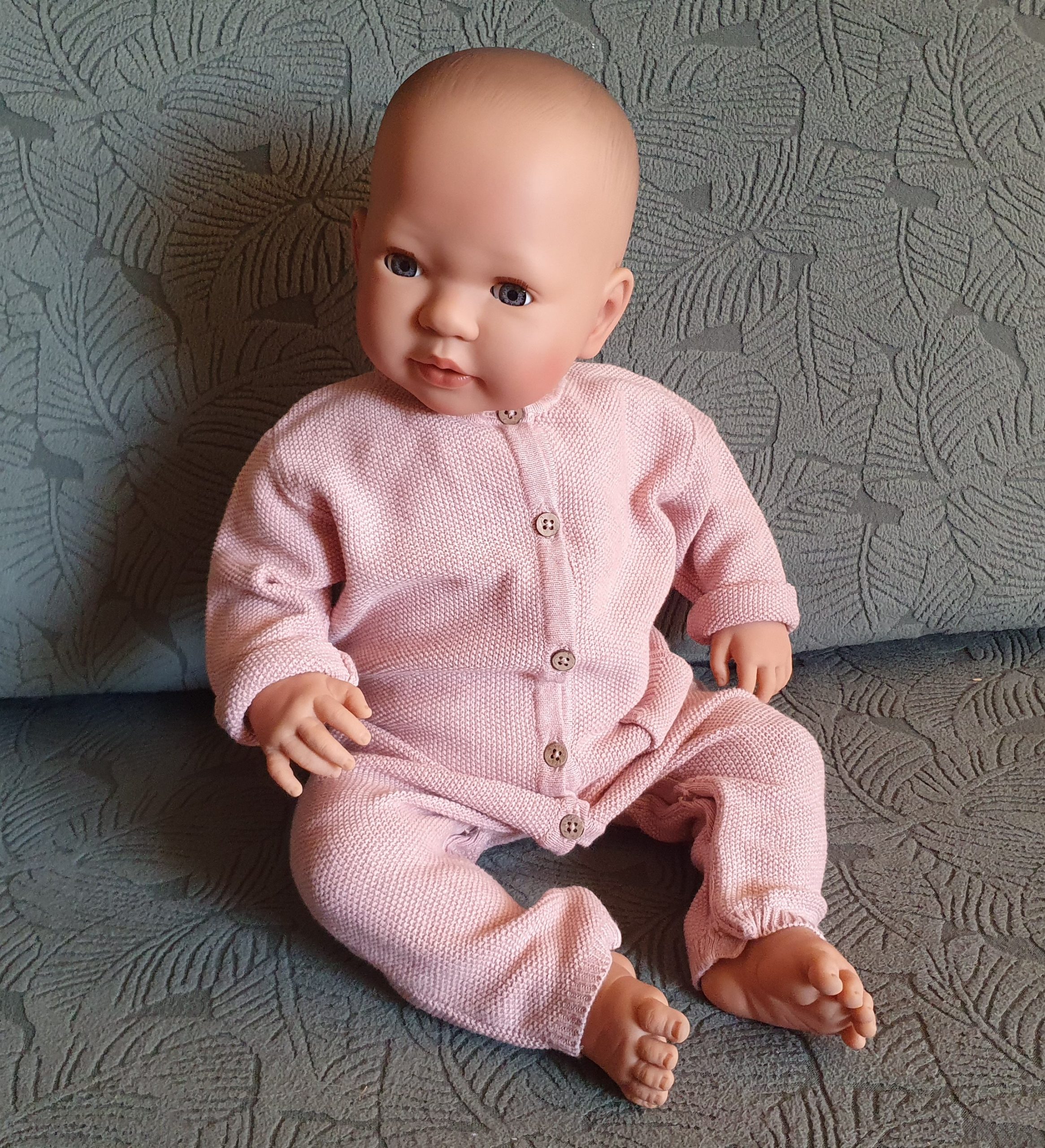 Mooie kwaliteit grote maat Levensechte Babypop Lisa met blauwe slaapogen maat 52 cm.