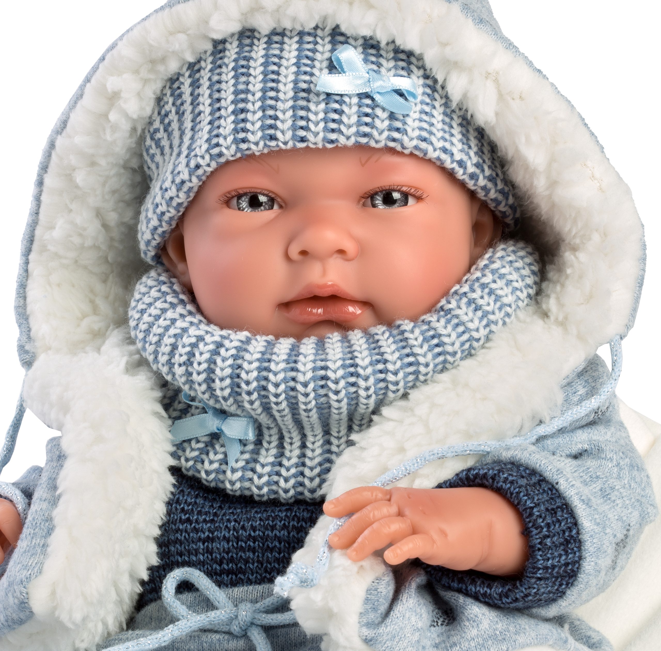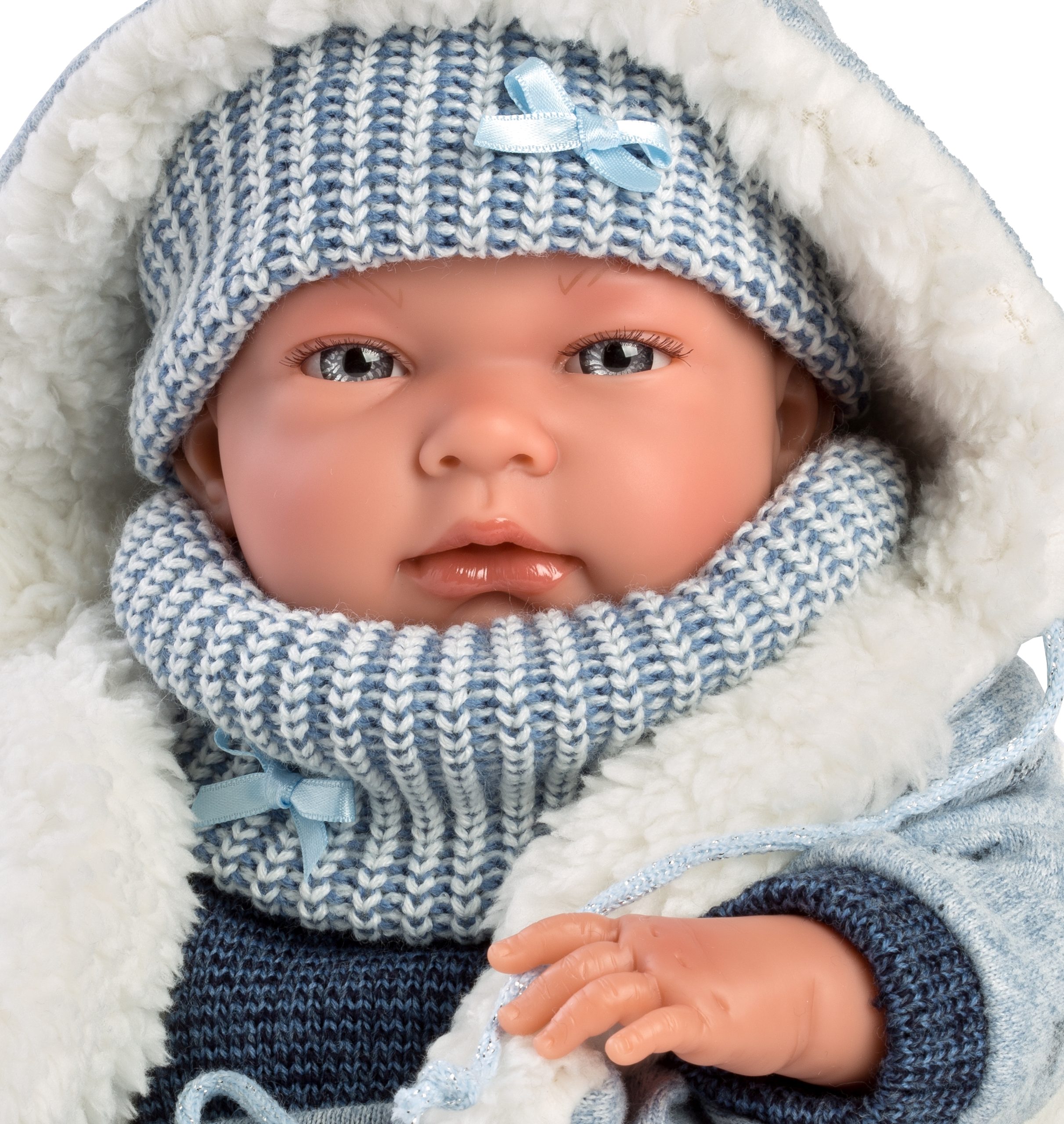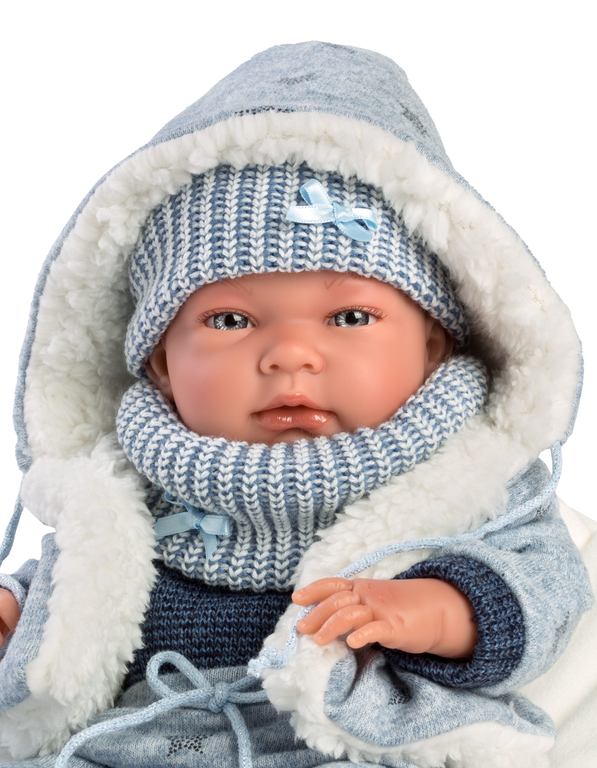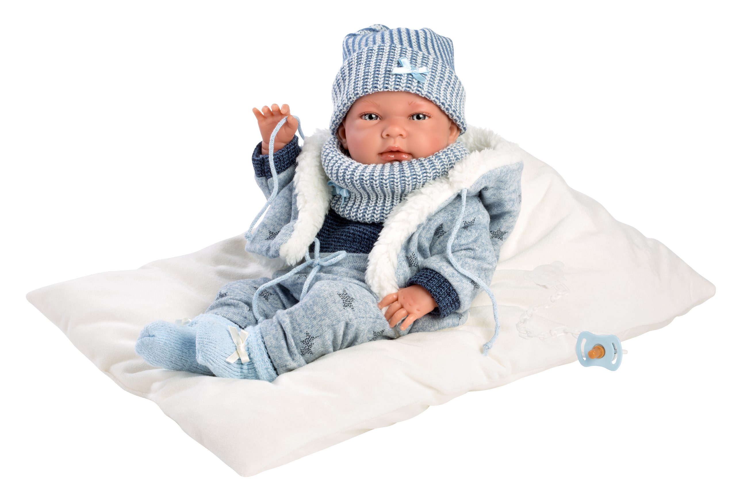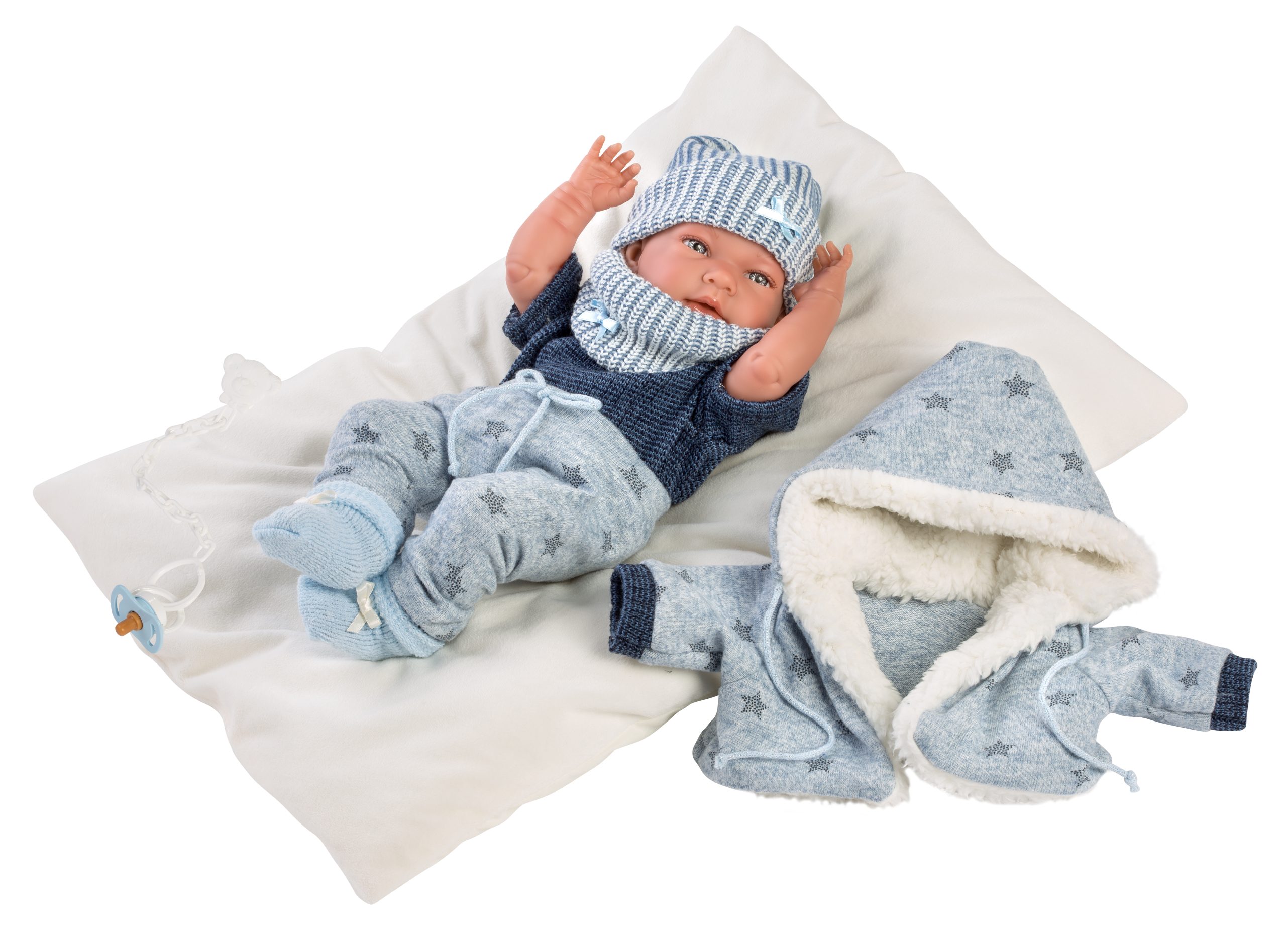 Levensechte babypop jongetje van het exclusieve merk Llorens ca 40 cm. Met rimpeltjes over het lichaam, naveltje en geslacht. Het is dus een echt jongetje. Hij heeft sprekende blauwe ogen met wimpertjes. Het gewicht van deze babypop is 700 gram. Inclusief ligkussen, mooie kleding en speen. Passende kleertjes zijn in de afdeling poppenkleding. Is niet geschikt voor hele kleine kinderen en mag niet in bad vanwege het materiaal en de tere wimpers. Verpakt in een mooie doos. Gratis verzending binnen Nederland. Klanten uit België betalen een toeslag vanwege de hogere verzendkosten naar België.