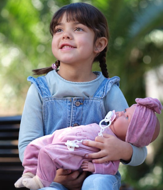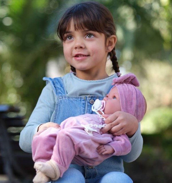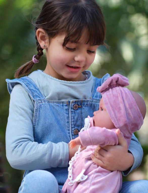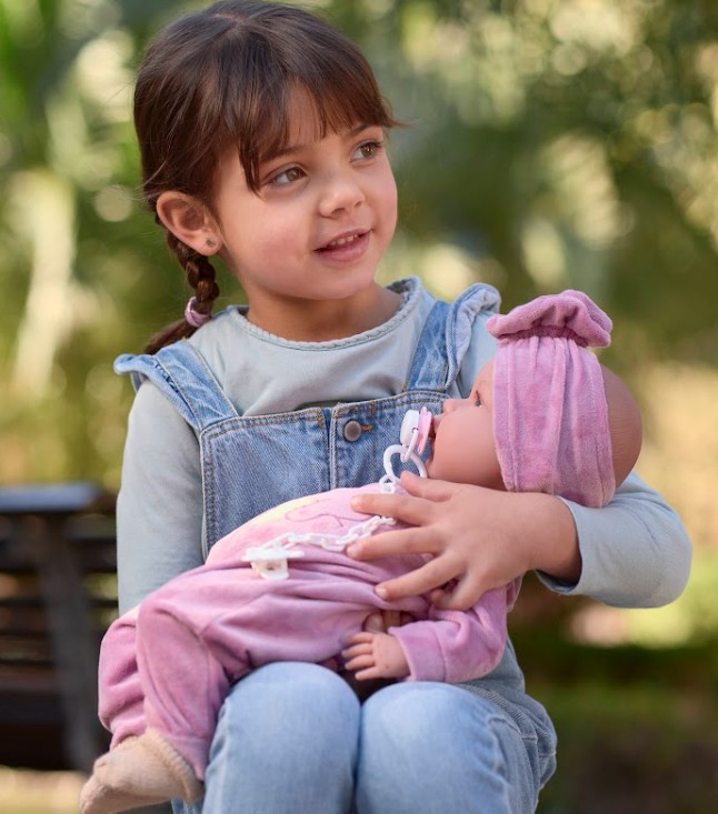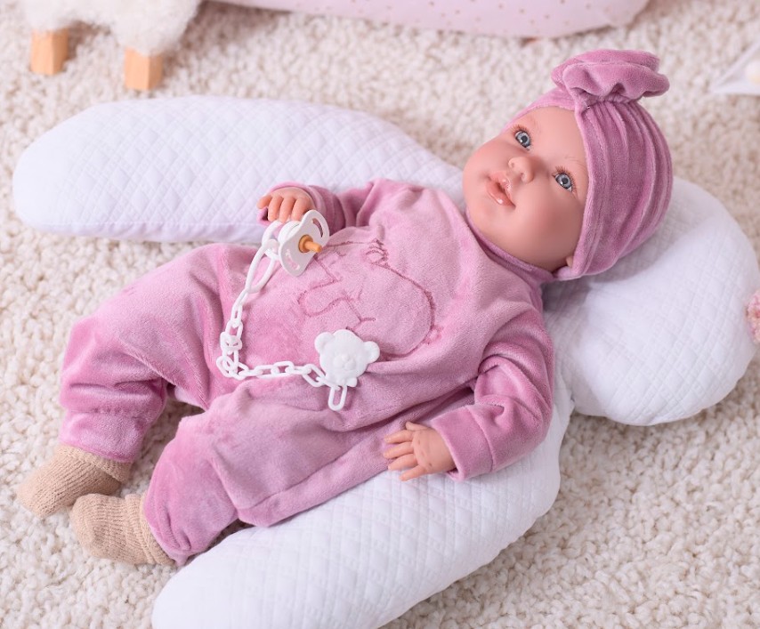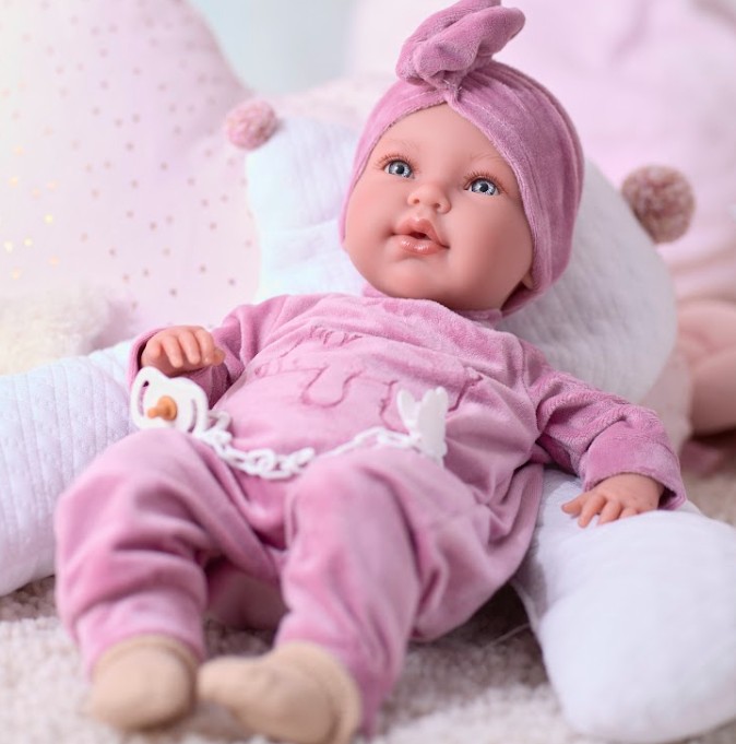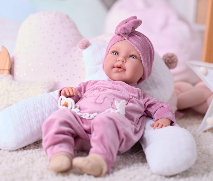 Nieuw binnen : Schattige levensechte softbody babypop met van het merk Llorens 42 cm. Het lijf is van stof, de armen, benen en hoofdje zijn van zacht vinyl. Er zit een klein mechanisme in de buik. Als je op het buikje drukt dan maakt zij geluidjes. Het geluid stopt zodra het niet meer ingedrukt wordt. Als je niet op het buikje drukt maakt de pop geen geluid. Zij heeft sprekende blauwe ogen met wimpertjes. Is niet bedoeld voor hele kleine kinderen vanwege de tere wimpertjes. Het gewicht van deze babypop is ca 700 gram. Inclusief mooie zacht kussen, kleding set speen. Passende kleertjes zijn in de afdeling poppenkleding. Een extra speen is apart te bestellen verderop in deze afdeling. Verpakt in een mooie doos. Gratis verzending binnen Nederland. Klanten uit België betalen een toeslag vanwege de hogere verzendkosten naar België.