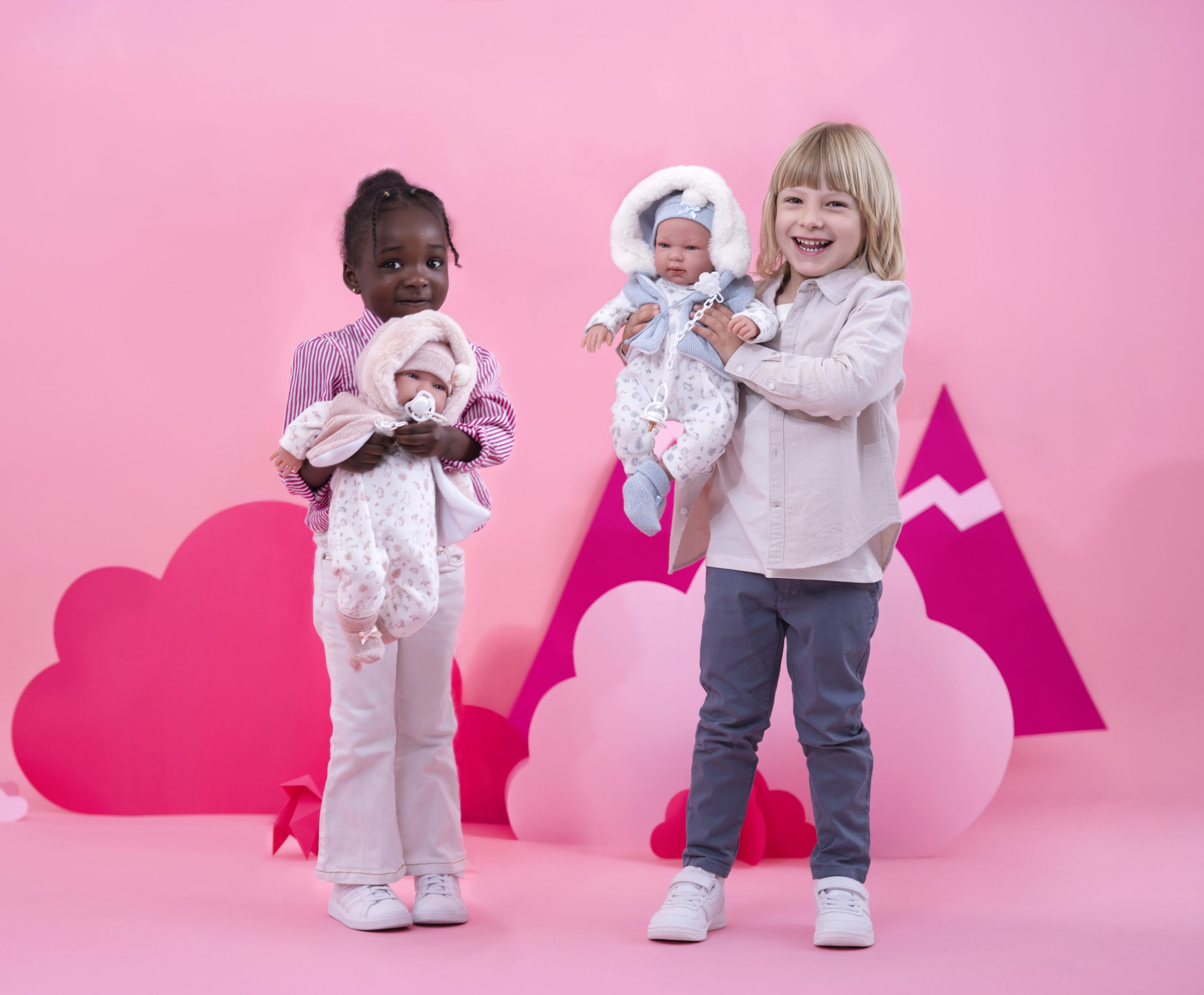 Nieuw Binnen : Levensechte soft body babypop van het exclusieve merk Llorens 44 cm. Het lijf is van stof, de armen, benen en hoofdje zijn gemaakt van soft vinyl. Er zit een klein mechanisme in de buik. Als je op het buikje drukt dan maakt zij geluidjes. Het geluid stopt zodra het niet meer ingedrukt wordt. Als je niet op het buikje drukt maakt de pop geen geluid. Zij heeft sprekende blauwe ogen met wimpertjes. Is niet bedoeld voor hele kleine kinderen vanwege de wimpertjes. Het gewicht van deze babypop is ca 700 gram. Inclusief kleding en speen. Passende kleertjes zijn in de afdeling poppenkleding. Verpakt in een mooie doos. Een extra speen is apart te bestellen verderop in deze afdeling. Gratis verzending binnen Nederland. Klanten uit België betalen een toeslag vanwege de hogere verzendkosten naar België.